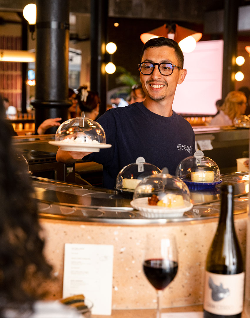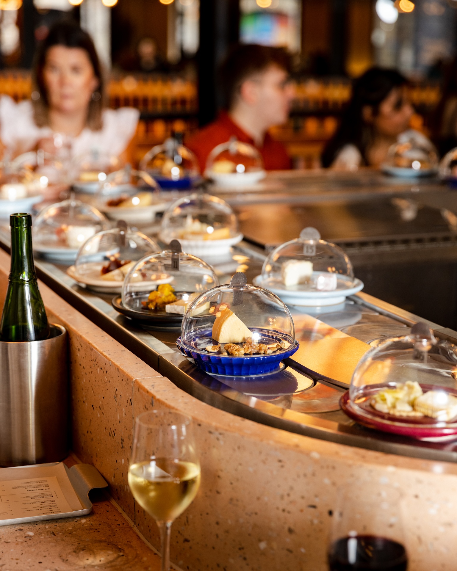 Eating great cheese should be fun. So we put the best local cheeses on a conveyor belt — each plate paired with something delicious. Grab a seat, help yourself, and get ready to change the way you eat cheese.