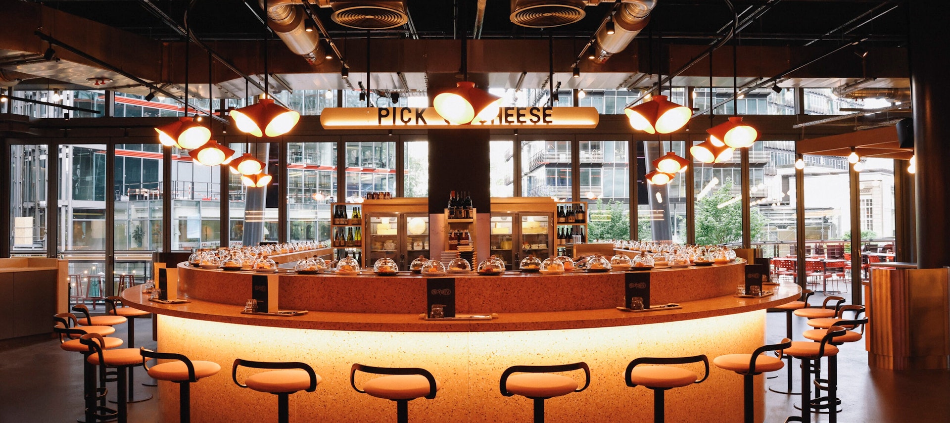 Hallo Berlin! Nestled inside the lively Kerb Food Hall at Potsdamer Platz—just steps from the Brandenburg Gate, Tiergarten Park, and the Berlin Philharmonic—Pick & Cheese serves up local German cheese with unique pairings and condiments.